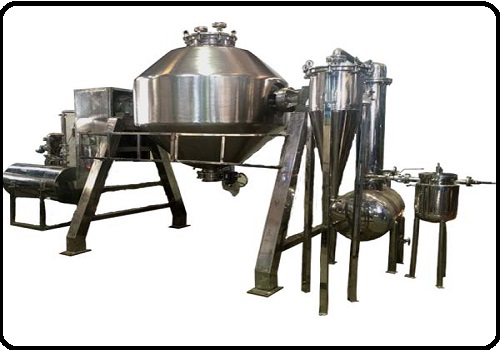 Roto Cone Vacuum Dryer suitable for drying of materials which cannot resist high temperature, material which are easily oxidized, volatatile materials which should be retrieved, materials strong irritant and poisonous in nature. The roto cone dryer with improved technology integrates during operation under vacuum. The roto cone dryer facilitates enhanced drying efficiency, low temperature operation and economy of process by total solvent recovery. It helps cGMP based working by achieving optimum dust control, while offering advantages of efficient charging and discharging of materials. The drying unit equipped with lump breakers initially breaks large lumps and subsequently powders them (in single cone). The rotary action of the dryer together with mechanical action of the breakers cuts down drying time and gives a lump free product.
